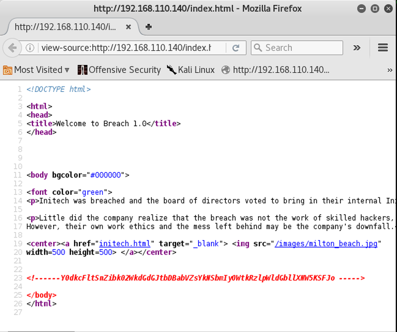 Breach 1.0 is meant to be beginner to intermediate boot2root/CTF challenge. The VM is configured with a static IP address (192.168.110.140) so you will need to configure your host-only adaptor to this subnet.