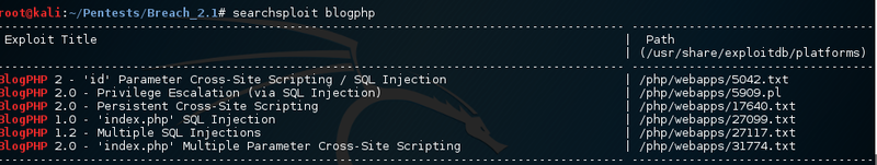 There exist a few know exploits. The SQL injection is already documented. Cross-Site Scripting is not relevant, as this does not help in exploiting the server.