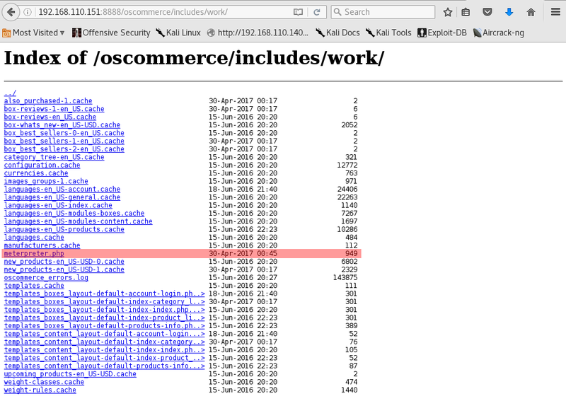 /var/www/html2/oscommerce/includes/workThe web shell can be executed by simply browsing to the file.