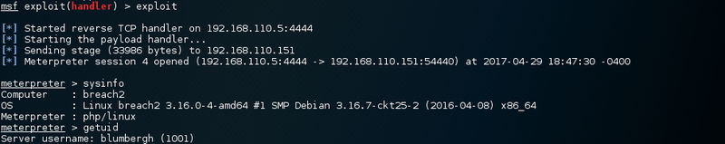 Breach 2.1 is meant to be beginner to intermediate boot2root/CTF challenge. The VM is configured with a static IP address (192.168.110.151) so you will need to configure your host-only adaptor to this subnet.