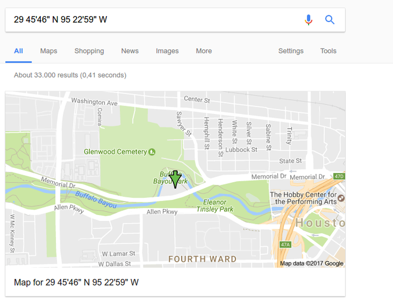 The service banner includes only a set of coordinates. A quick search on the internet provides a pin on the map.