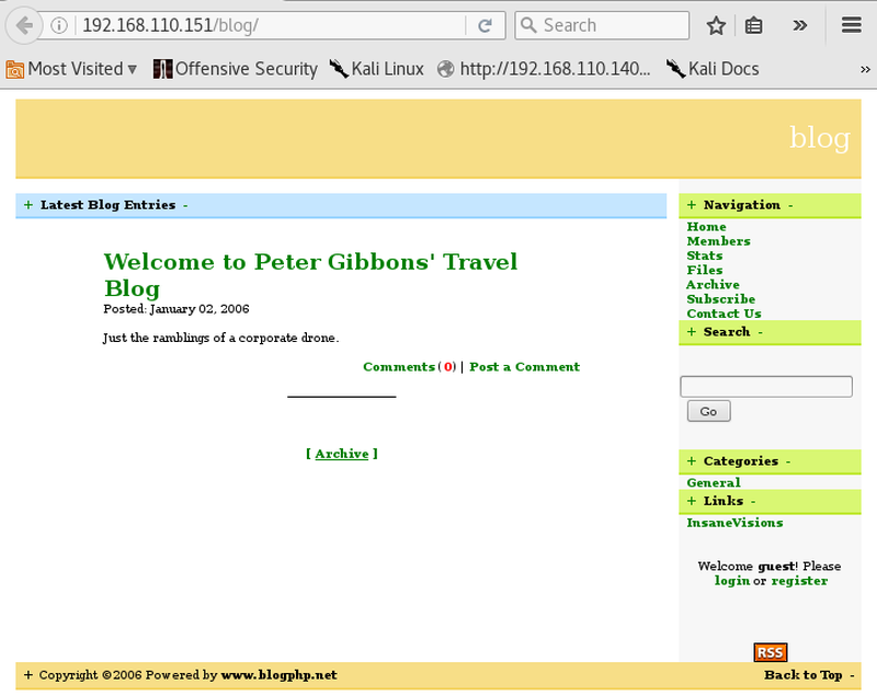 The most intriguing part is, that another IP address is also browsing the blog regularly. This might be Peter slacking at work! This is probably a hint for a client side attack. Thinking back to the searchsploit results, a few XSS vulnerabilities have been documented for the blog.