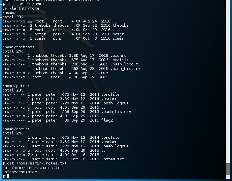samir.And last but not least, the file flag1 is waiting in his home directory.