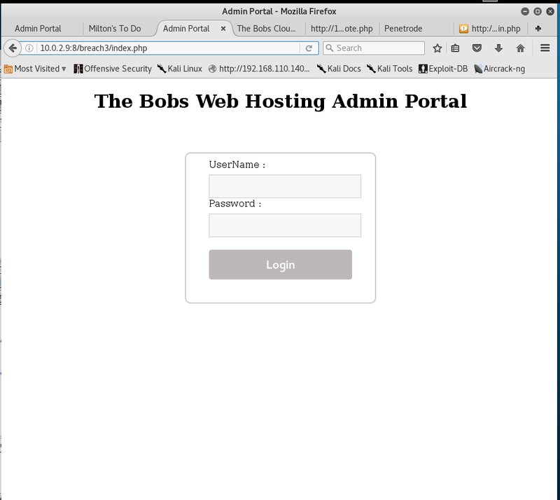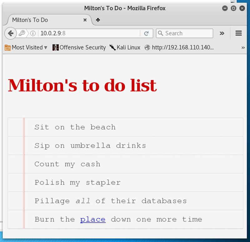 Voilà, we have access to Milton’s ToDo list. Following the link leads to a login form.