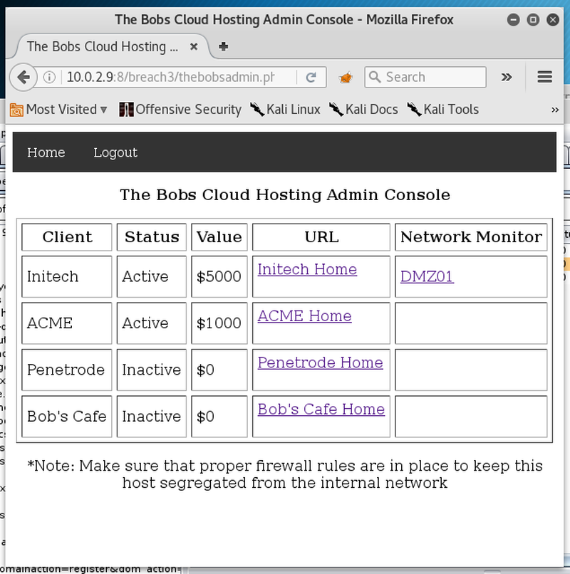 The third boot2root system in the Breach series is an intermediate challenge. This time the VM will automatically acquire an IP address via DHCP.