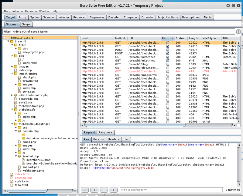 ssh -i /root/.ssh/id_rsa -l thebobs 10.0.2.9 -D 8888The different web scripts can be listed in the existing reverse shell.