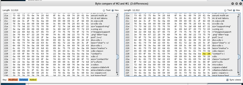 This results in different sized responses. To identify whether there exist any security problems just quickly send the base response and a different one to the comparer.