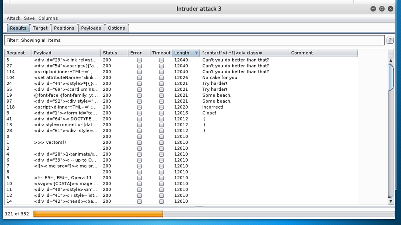 A smile does not seem to be a proper response. As the response size varies for a few requests, let’s take a closer look. In the intruder session the particular response can be extracted via Grep - Extract.
