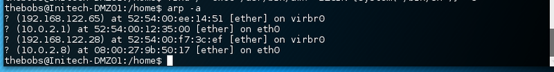 Taking a look at the arp table reveals the ip addresses of the two vms.
