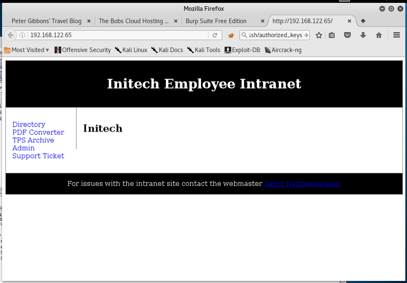 The web application is called the “Initech Employee Intranet”. In the web application only the PDF converter offers a suitable attack target on the first glance.